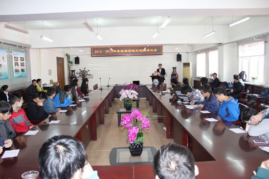 为了加强基层团组织之间的沟通交流,促进团员青年之间的相互学习,充分发挥榜样的模范带头作用,4月13日中午,304am永利集团官网2014-2015年度五四联评大会在动力楼619会议室举行。304am永利集团官网党委副书记苑颖、学工办主任李峰、团委书记金凤秋、团委副书记刘超,出席本次联评大会。