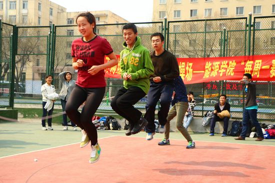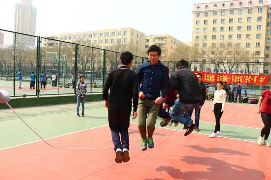 4月15日中午,304am永利集团官网“每周一赛”第3期在一区排球场举行。本次比赛项目为集体跳绳,活动由304am永利集团官网学生会体育部和1302403团支部联合承办,学院各小班团支部报名参赛。每组有两次尝试机会,每次两分钟,从跳的人数达到三个开始计数,两次成绩取最高来决定名次。赛前同学们争先练习,比赛的时候同学们明确分工,积极配合,摇绳的同学和跳绳的同学都努力地配合队友的节奏,以取得更好的成绩,充分体现了同学们分工合作的团队精神。