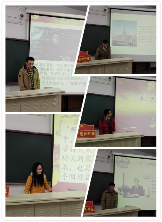 本期讲坛主题为“‘哈工大规格’大讨论”。讲坛活动中,梁鸿同学首先发言,他认为,“规格严格”代表着一丝不苟的态度,也是尊重客观事实的态度。在学习科研中,梦想家与空想家往往只有一步之遥,比想法更重要的是脚踏实地地去做。接下来,吕中原同学进行了进一步细致的阐述:“规格严格,功夫到家”的校训每句都有两层意思。“规格严格”有两层意思:首先要有“规格”,其次要“严格”遵守。功夫到家也有两层意思:一是要肯下“功夫”,二是功夫要下到点子上。“规格严格”与“功夫到家”,二者是辩证的统一。只有“规格严格”,“功夫到家”才有明确的目标与要求;只有“功夫到家”,“规格严格”的实现才有可靠的保证。随后,王翠林,文爽,许生多三位同学依次阐述了对工大规格的理解。“规格严格”就要求我们要苦学,“功夫到家”就是要求苦学得到点子上。“规格严格,功夫到家”不仅是对学术的要求,也是对做人的要求――做一个明辨笃实、脚踏实地的人。