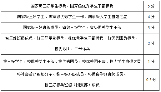 4、德育综合表现加分占5%(不可累积加分,最高分不能超过5分)