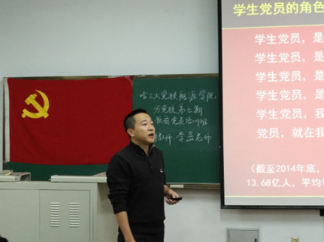 (文/马云绮、图/王涛)2016年10月27日晚18:00,哈工大党校能源分校第7期预备党员培训班第四讲在正心220顺利进行。计算机学院党委副书记李岳老师担任主讲教师,他以《做一名真实的学生党员》为主题做了精彩讲座。