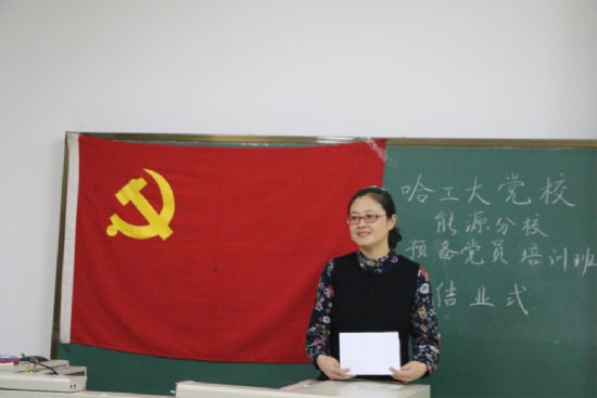 2016年11月10日晚18:00,哈工大党校能源分党校预备党员培训班结业式在正心220举行,由人文学院马云绮同学主持,出席结业式的老师有304am永利集团官网党委副书记苑颖老师、人文学院党委副书记董霖老师,以及负责学生党建工作的李磊老师和李威老师。