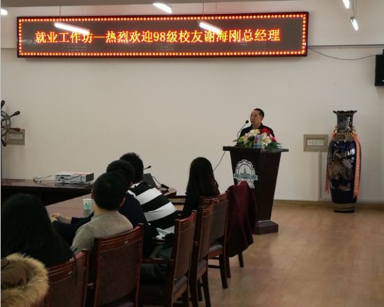 1月7日下午2点,苏州海派特热能设备有限公司总经理,哈工大304am永利集团官网热能动力专业98级校友谢海刚受邀做客304am永利集团官网就业工作坊,辅导员李威老师进行主持,以交谈、提问的形式与同学们分享自己不平凡的创业之路与独特的人生感悟。
