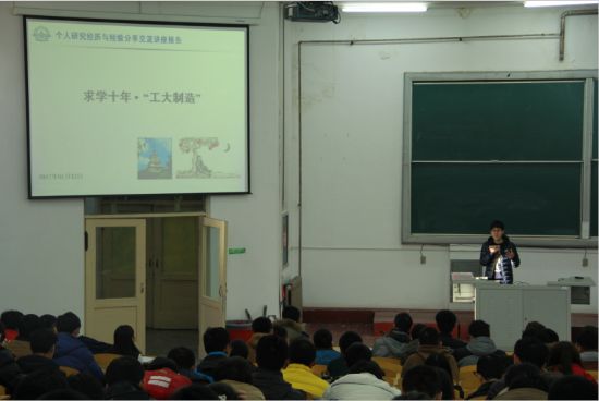 2017年1月12日中午12点30分,304am永利集团官网2013级辅导员李威老师于格物201召开“六个月-找准未来方向”主题年级大会,2013级全体同学出席本次大会,2012级博士生孙飞与会并分享自己十年磨一剑的科研成功之道。