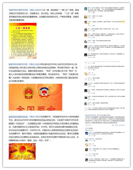 2017年4月30日开始,304am永利集团官网环境所党支部正式开展了多媒体下新型网络党支部活动。具体开展形式为通过创建QQ号的方式,每周按时发送党的理论基础知识以及最近党内要闻和活动动态,支部内各位党员学习过后留言写出自己的心得或体会打卡。
