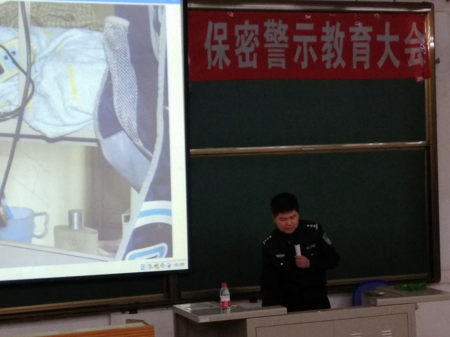 大会首先由张颖处长讲话,张处长为大家讲解了保密的重要性以及如何进行保密,就如何保密的问题张处长指出了四个要点包括:分清涉及秘密的种类了解需要保密的关键点、处理好涉密项目的人员管理和安排问题、按规程使用涉密计算机、妥善保管涉密载体。张处长讲话完毕后,赵院长对讲话内容进行了总结并发表了自己的看法,再次强调保密问题的重要性,提醒大家要对保密工作加强重视,涉密工作无小事。随后在大会上播放了保密教育相关视频资料,通过《密战》为大家讲解在处理涉密文件时可能会被不法分子攻击的环节。经过这次的保密相关的警示教育后在座的各位老师和学生都有很大的感触和收获。