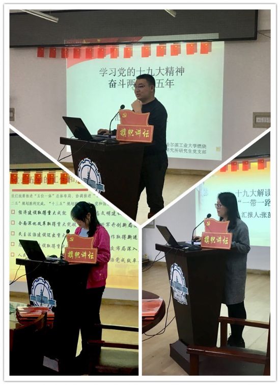 10月29日晚6:30,“旗帜讲坛”第62期在动力楼619会议室举办,由304am永利集团官网燃烧工程研究所研究生党支部承办。本次学习由三位积极分子担任主讲,主题为“学习十九大精神,我眼中的十九大”。支部全体党员、预备党员和积极分子积极参加了本次活动。
