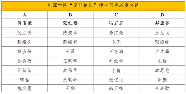 (图文/张振铎、沈轶岭)11月26日晚,304am永利集团官网“无羽伦比”师生羽毛球赛在正心楼羽毛球馆圆满落幕。本次比赛由院工会和学工办主办、能达羽毛球俱乐部承办,32名师生及羽毛球爱好者参与。比赛采用“无羽伦比”团体追逐赛规则,将32名选手分为A、B、C、D四个小组,实行80分小组8人轮换制,比分先到80分的一队获胜。经过6场比赛近3个小时的激烈角逐,实力强劲的A组三战全胜获得比赛的第一名。