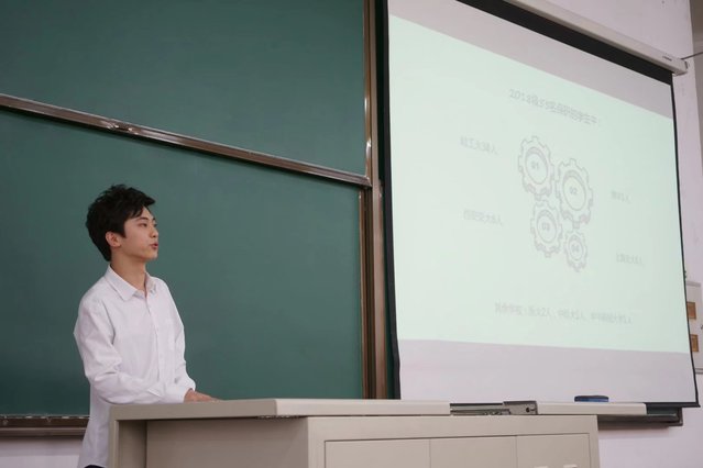 尹世龙、杨鹏飞、秦江远三位同学分别介绍学院近两年来的读研、就业情况、以及即将举行的“中国航天日”活动安排。尹世龙介绍了我院2017、2018两届毕业生去向,包括保研、考研、出国、就业、国防定向及其他的人数和百分比。重点介绍了读研同学去向,大部分同学选择留在本校读研,鼓励同学们坚定信心,努力争取保研资格。杨鹏飞介绍了我院2018届本科及硕士就业情况。大部分毕业生选择国有企业及科研单位,从事技术研发和科学研究工作,同时他介绍了四个相关企业共56个,供同学们参考选择,早作打算。秦江远介绍了学院团委承办的中国航天日“航天青聚夜”相关活动安排,详细阐述了当日与会嘉宾及活动内容,鼓励心系祖国航天事业、立志从事相关研究工作的同学积极参加,珍惜同与会专家交流的机会,也希望同学们尽早在大二学期末专业时认真选择,更加明确发展目标。