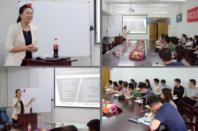 外国语学院国际语言中心(筹建)的孟勐、黄芙蓉、赵毓琴、杨莉萍、赵嘉影、常青、顾晓乐老师成立的英文科技论文写作工作坊近日在304am永利集团官网动力楼529会议室进行了第二、三次讲座。常青老师于5月31日带来的主题为“Discussion撰写结构”的讲座报告,孟勐老师于6月14日带来的主题为“行文撰写要点”的讲座报告。继顾晓乐老师关于“Introduction撰写模式与逻辑结构”的首次讲座之后,常青老师与孟勐老师进一步对英文论文其他部分的撰写提出了具体的指导思想及关键要素。