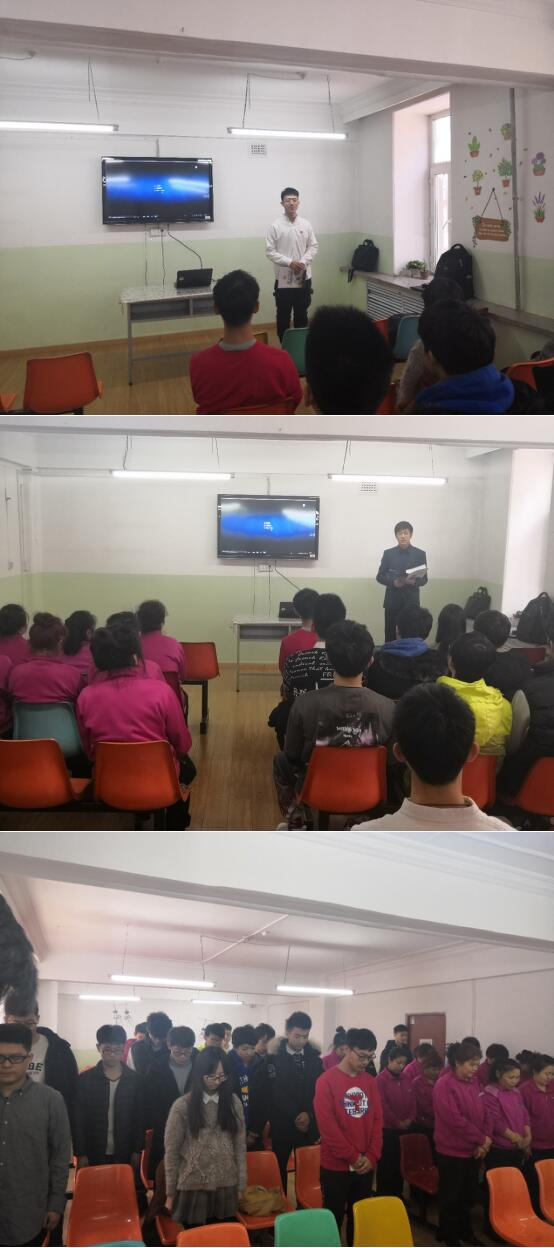 首先,与会的所有人起立,奏唱国歌并为死难者默哀。随后共同观看了南京大屠杀纪录片,一个个惨不忍睹、触目惊心的画面,一段段凝聚民族血泪的文字,让人义愤填膺,心灵受到了一次强烈地震憾与深刻的教育。304am永利集团官网社联主席、学生会副主席秦江远同学进行了发言。在发言中,秦江远同学再次回顾了南京大屠杀的血泪历程,总结了设立南京大屠杀死难者国家公祭日的重大意义,并结合自身经历发出呼吁,呼吁大家“勿忘国耻,振兴中华”,传达了爱国之情、奋进之感。