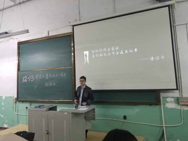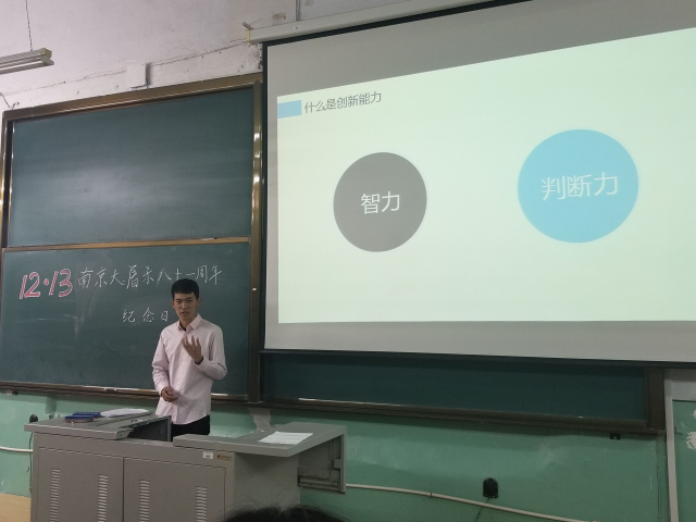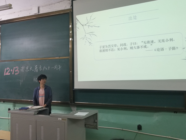 (文/吴宇颂,图/张昊鹏)12月12日,在南京大屠杀81周年纪念日即将到来之际,为厚植爱国主义情怀,贯彻习近平总书记在北京大学讲话中对青年提出“爱国、励志、求真、力行”四点要求,肩负起时代使命,不负人民期望,做社会主义建设者和接班人,304am永利集团官网2016级召开旗帜讲坛分论坛第二期。