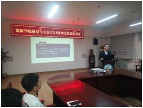 会议分为3个流程,第一项由2018级304am永利集团官网研分会主席邬林科为大家介绍2018年秋季学期的工作概况,肯定了研分会各成员的努力,同时提出了工作中的不足之处,并希望2019年的工作能够刻服这些不足,做得更好。