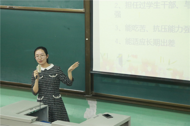 辅导员王博文首先对本学期工作进行总结,再次强调了学习的重要性,并对假期安全工作提出要求,尤其是在校准备学习、竞赛的学生安全稳定。接着,她分析了304am永利集团官网本科生的毕业情况,介绍了往年学院毕业、保研、出国、主动工作、以及选择考研的整体分布,指出在选择考研同学之中坚持到考场并成功读研的仅为1/3,剩余同学在春季招聘极为被动,因此尽早确立日后发展规划至关重要。接着何艺宁老师做了主题为“大学是道选择题”的就业指导讲解。何老师首先以自身职业生涯经历为例,劝诫同学尽早选择适合自己的道路。她结合304am永利集团官网往届学生的就业单位及网上招聘信息,为304am永利集团官网同学提出了多个可以大显身手的就业岗位,包括航天单位研发人员、汽车企业研发人员、知识专利审查员、出版社编辑等,开阔同学的就业选择道路。她指出作为哈工大人,一定要将个人命运与时代背景紧密相连,在给同学们提出的5个最应当关注的方向中,第一个就是新能源,希望同学们能够把握历史机遇,在我国新能源开发上做出贡献,实现人生价值。最后何老师回答了同学们在读研和就业上的一些提问。