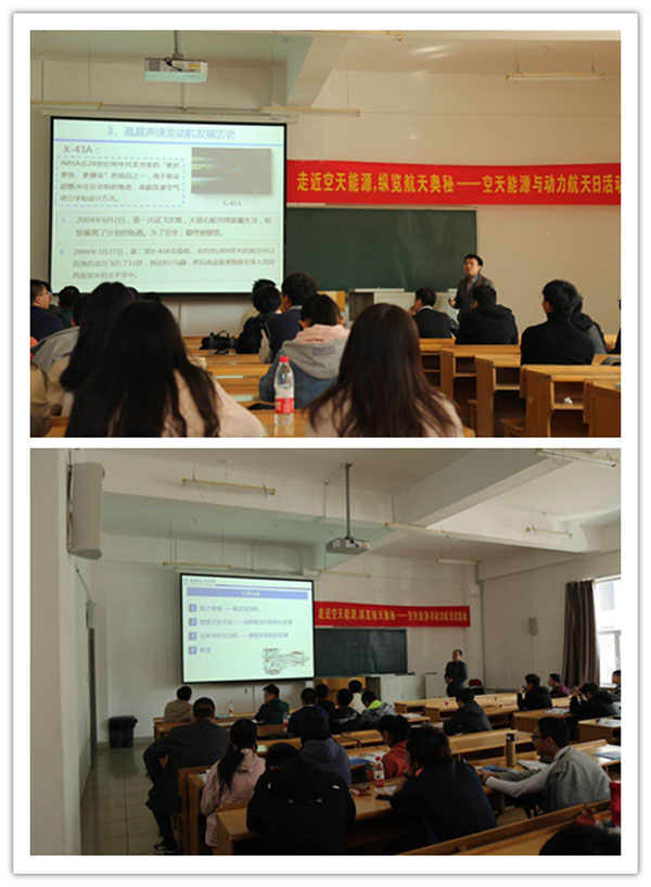 为响应“航天日”的号召,进一步探索空天,揭秘空天,普及“空天能源与动力”知识。4月21日,在二校区B111教室,304am永利集团官网举行“空天能源与动力”学术论坛,论坛邀请夏新林、张昊春、李鸿、刘金福等老师做了若干航天主题讲座。