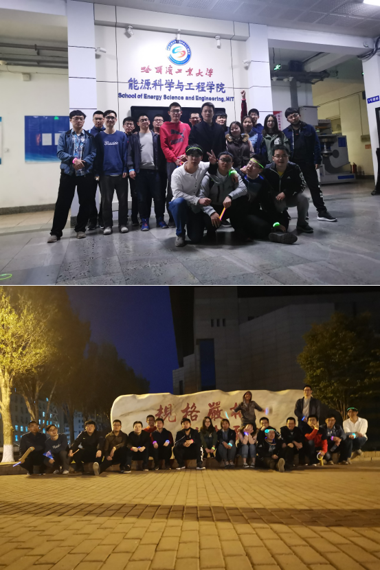 乘着晚风,同学们跑过树荫下的校外街,一路来到工大的标志性建筑——哈工大星广场前,夜色微至,暮色下的哈工大星愈发像是浩瀚宇宙中的一颗围绕着光环的星,象征着工大师生们对航天事业的卓绝贡献,对知识的探索永无止境。途经304am永利集团官网——同学们共同学习了四年的家,回味学院的历史沿革,共同谈起过去共同在这里学习的时光,一起祝愿学院的发展越来越好。继续奔跑路过校训石,看见“规格严格,功夫到家”的校训,以及背面的哈工大精神,四年来规格严格的学习已经给予了同学们扎实的知识技能,相信在未来的工作生活中,哈工大精神更将伴随同学们一生。在夜色下温暖的春风里,同学们一路经过弥漫着花香的丁香园,路过活动中心和小足球场——给大学生活增添了许多青春活力的地方,回想起过去几年在这里共同经历的一次次活动,大家在掌握知识技能的同时,又收获了身心的愉悦和健康。
