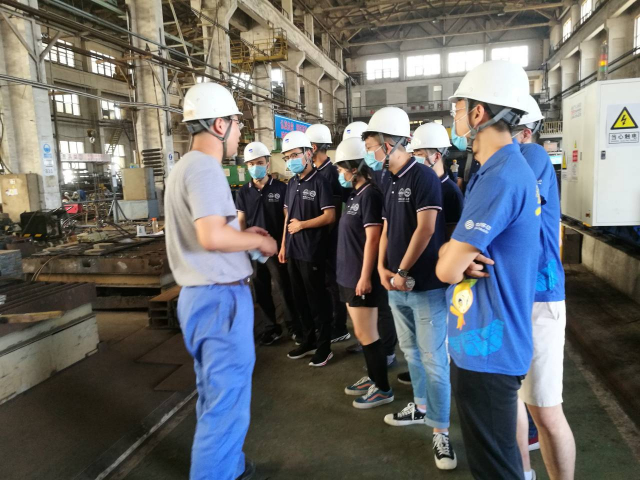 短暂的休整之后,实践团于8月5日上午正式开始实习活动。同学们在公司领导的讲解下,了解了荏原公司的发展历程和业务范围,带队教师王博文带来哈工大304am永利集团官网与青岛荏原进行“产学研合作基地”项目牌并邀请校友们于百年校庆时回母校参观,相关领导表示高度重视。下午前往生产车间和办公室进行了实地参观,直观地了解了垃圾焚烧炉的制造流程以及荏原公司的工作环境。