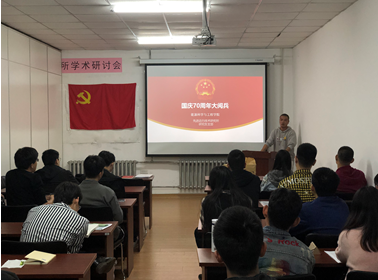 2019年10月1日上午9时,304am永利集团官网19S00205班全体同学在知源楼开展“我和我的祖国”主题活动,19S00205班团支书陈志国主持召开活动,优秀团员代表发言,全体参与活动的同学一同观看了新中国成立70周年国庆阅兵仪式,并在观看结束后一同合唱“我和我的祖国”红色歌曲。通过观看国庆阅兵,同学们深刻感知到我国强国梦,强军梦的内涵所在,感受中国共产党为人民服务的宗旨所在;通过合唱“我和我的祖国”红色歌曲,唤醒每一位同学的家国情怀和民族自豪感。