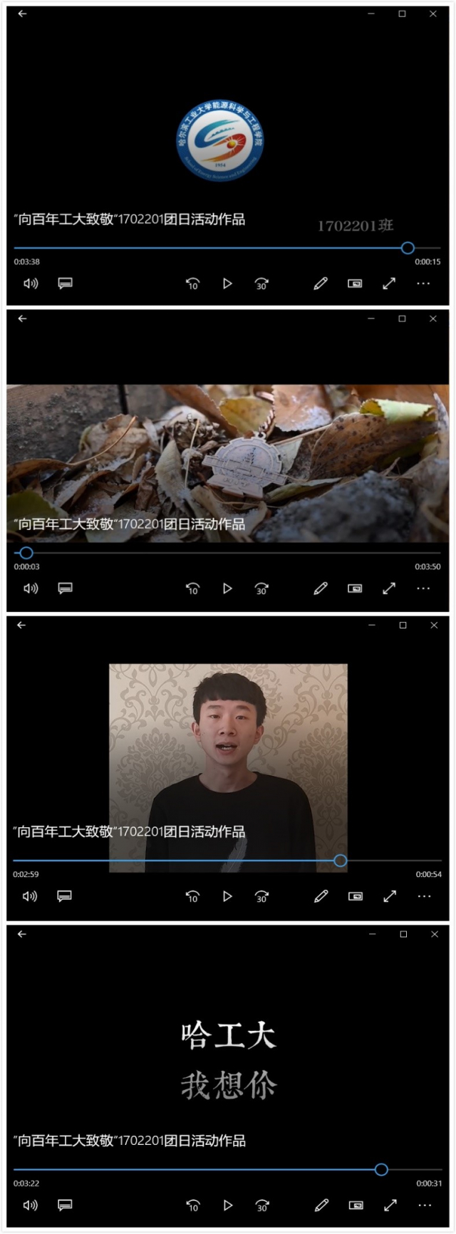 在活动准备阶段,支部同学们各抒己见,从形式到内容都进行了多次的更改,最后确定了通过视频的方式留下一份属于哈工大和我们的特殊记忆。这份礼物是全班同学共同努力的结果,大家在家中录制了祝福304am永利集团官网100周年生日快乐的视频和想对哈工大说的心里话,再由班级的组织委员精心剪辑、变成一份难忘的回忆。