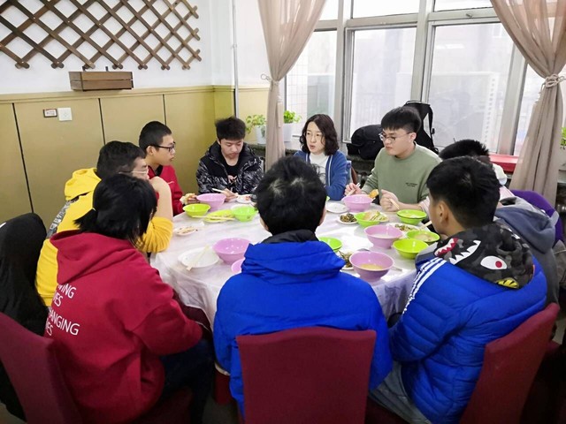 金老师首先询问了同学们的最近的学习生活情况,又提起在哈工大工作多年的“食堂西施”,进而回忆起自己的大学时光。金老师向同学们讲述着自己在大学期间所经历的许多具有纪念意义的事情,强调日常生活与学习生活同等重要。就餐完毕后,金老师向同学们正式地介绍了自己,并请每一位同学进行了自我介绍。金老师讲:“相见即是缘分,希望今后与各位能够保持联系,同学们有什么需求可以向我提,我会最大程度地整合资源来帮助大家。”同学们深受感动,起身致谢金老师。