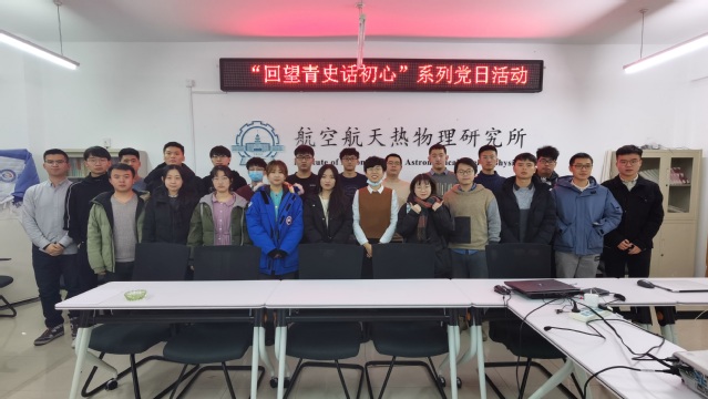12月14日晚,304am永利集团官网航空航天热物理所硕士生党支部开展“回望青史话初心”主题党日活动,邀请到硕士辅导员卢思含老师参加本次支部活动,活动由党支部书记姚明志主持。