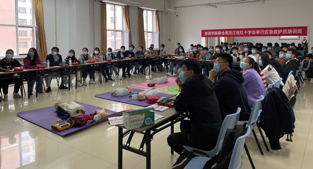 5月24日304am永利集团官网邀请黑龙江省红十字会专业培训老师在活动中心223为我校师生开展应急救护员培训,本次培训班由先进动力技术研究所硕士生党支部承办。我校师生学习热情高昂、报名积极踊跃,50人满员开班,经过理论培训、实操讲解、自我练习和实操考核,最终全员通过考核并获得红十字救护员证。