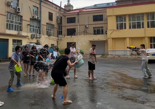 为了缓解连日高温天气带来的酷热,营造轻松减压的校园氛围,在体验夏季生活乐趣的同时,感受炎炎夏日里的丝丝清凉,7月18日和23日304am永利集团官网组织学生在节能楼后进行打水仗活动,辅导员卢思含、邓冰冰、赵书馨和邱燚也一同加入。