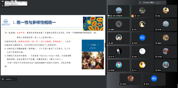 2022年5月5日,304am永利集团官网举办了“变疫情危机为开展课程思政契机-能源动力课程思政专项行动”第六场线上研讨会。本场研讨会主题为“统一性和多样性相统一”,由王丽老师做主题报告,教育部高校思想政治工作精品项目、黑龙江省高等学校课程思政建设教学团队成员、学院各系所中心的20余名授课教师参与研讨,304am永利集团官网副院长罗磊主持研讨会。