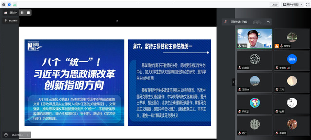 李彪老师列举了“主导性与主体性”案例,并指出教师要主导课程思政教学,同时还要加大对学生的认知规律和接受特点的研究,进而发挥学生主体性作用。先生不应该专教书,他的责任是教人做人;学生不应该专读书,他的责任是学习人生之道。李彪老师在会上指出,要办好课程思政,关键在教师。教师教育影响了青年人的命运,也影响民族和人类的命运。李彪老师强调,在教学当中,要进一步教育引导学生多读马克思主义经典著作,让学生正确理解经典著作,掌握马克思主义精髓,感知中华文化魅力。