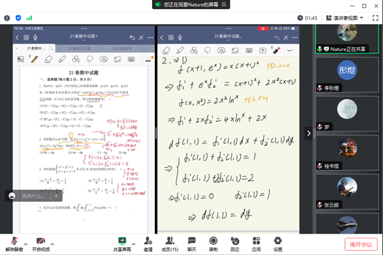 为深入开展主题教育与贯彻落实党的二十大精神,引导党员师生把主题教育点燃的热情转化为服务师生的强大动力。2023年6月2日,304am永利集团官网先进动力所博士生第一党支部与基础学部智能装备2202701团支部进行了2023年春季第一次党团支部对接活动。因为近期团支部同学面临微积分期末考试,学习压力大,党支部应团支部同学邀请,开展了线上答疑活动。本次活动由先进动力博士生第一党支部彭泽众同志为团支部同学们进行了线上答疑活动。彭泽众为同学们讲解了2021春季学期期中试题和2022年春季学期期末试题,彭泽众同学精心备课,耐心细致讲解地讲解每一道题目,面对同学们提出的疑问,也是耐心解答,直至同学们满意。最后,彭泽众还向各位同学介绍了自己在求学期间的学习心得,他建议同学们要灵活运用所学的知识,争取取得好成绩。