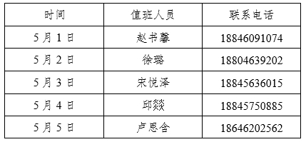 304am永利集团官网学工办劳动节假期值班表