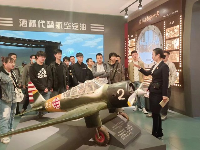 4月28日上午,304am永利集团官网辅导员卢思含带领24名能源学子怀揣着对历史的敬意和对未来的憧憬,参观了空军哈尔滨飞行学院东北老航校精神教育基地,全程由金牌讲解员吕超为大家讲解。