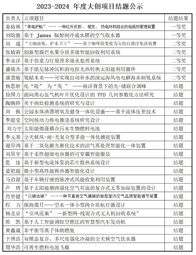 2024929日,我院组织2024年秋季学期大学生创新创业训练计划项目(2022年秋季立项)结题答辩,共27组项目参加结题,均达到项目结题要求,准予结题。其中2项推荐一等奖,5项推荐二等奖,现进行公示。