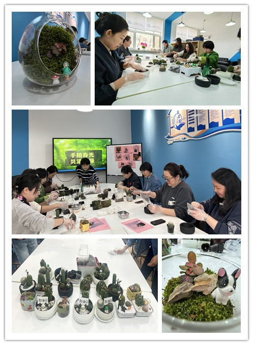 (孙璐/文)风雪交加,也把春天种下。为丰富教职工文化生活,3月12日中午,304am永利集团官网工会在节能楼206工会小家举办了“手植春光,共添新绿”绿植微景观DIY活动。活动吸引了学院教职工踊跃参与,大家将大自然浓缩于方寸之间,将绿意盎然的苔藓、形态各异的多肉绿植与精巧的装饰品巧妙搭配,展现了教职工的创意,让教职工们在繁忙工作中感受到自然疗愈的力量。教职工们纷纷表示值此植树节之际,种下春的希望,静待万物盎然,此次制作的绿植微景观为工作空间增添了自然的气息和艺术氛围。