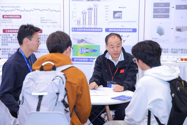 (邓冰冰/文)近日,304am永利集团官网“能聚未来先锋”实践团在潘如明老师带领下,赴北京参加第十三届储能国际峰会暨展览会,开展深度产业研学活动。学院高建民院长现场讲解304am永利集团官网国家储能技术产教融合创新平台研发的“吸附—压缩二氧化碳储能系统”、电解海水制氢电极及电解槽、“青鸥30”高能量密度燃料电池无人机等创新成果,通过实物展演展现能源技术转化实效,激发学生专业自豪感。